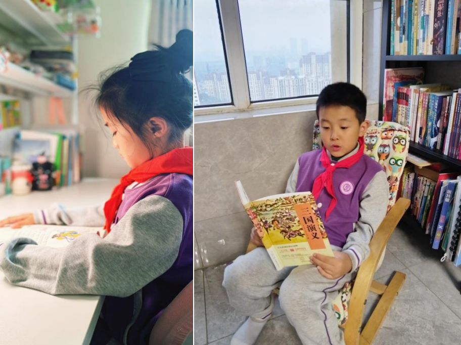 阅读是点亮童年的第一盏灯。夜幕降临或周末闲暇时,该班孩子们的家中总有一处专属“思想乐园”:他们或倚坐沙发,或伏案细读,在《西游记》的奇幻历险中感受勇气,在《昆虫记》的微观世界里探索奥秘,在童话的纯真与历史的厚重中拓宽视野。家庭作为课外阅读的重要阵地,家长们悉心守护这扇“成长之窗”,用陪伴让阅读成为孩子的日常习惯,为其未来铺设辽阔的认知之路。